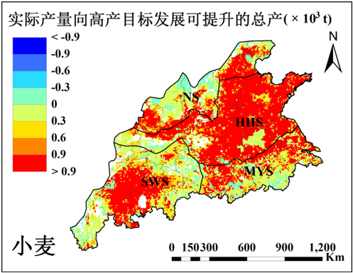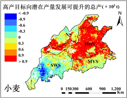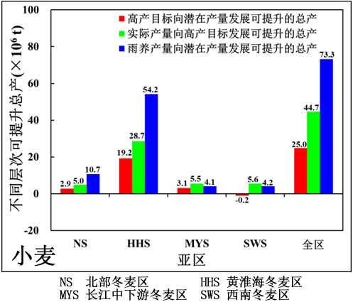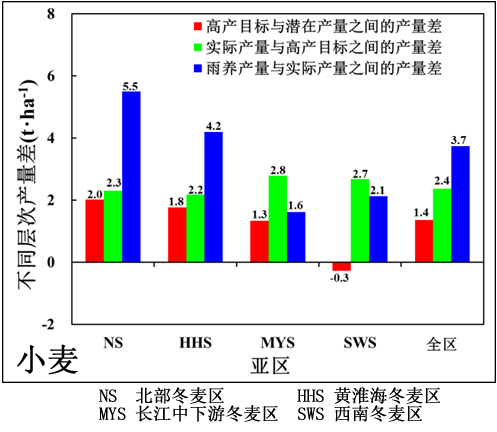基于我国小麦主产区129个站点1981-2010年的潜在产量和雨养产量,并结合区域高产创建目标及实际产量,量化了三个层次产量差:高产目标和潜在产量之间的产量差、实际产量与高产目标之间的产量差和雨养产量与潜在产量之间的产量差。不同层次产量差的空间分布呈现明显的区域差异,我国小麦生产力仍具有较大的可提升空间。小麦主产区高产目标与潜在产量之间的单产差为1.4t/ha(34.2%),实际产量与高产目标之间的单产差为2.4 t/ha(34.2%),雨养产量与潜在产量之间的单产差为3.8 t/ha(43.5%)。若高产目标向着潜在产量发展整个区域可提升的总产达25.0 × 10^6 t(15.3%),若实际产量向着高产目标发展整个区域可提升总产达44.7× 10^6 t(32.4%),若雨养产量向着潜在产量发展整个区域可提升总产达73.3× 10^6 t(45.0%)。研究结果可我国小麦区域生产策略的制定提供支持,对于确保国家及全球粮食安全具有重要意义。