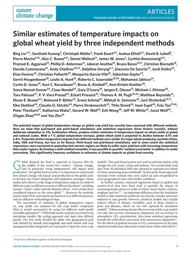 Similar estimates of temperature impacts on global wheat yield by three independent methods