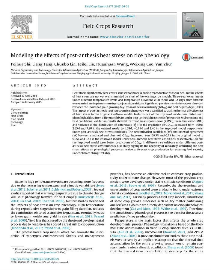 Modeling the effects of post-anthesis heat stress on rice phenology