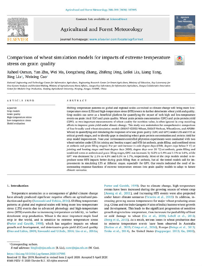 Comparison of wheat simulation models for impacts of extreme temperature stress on grain protein